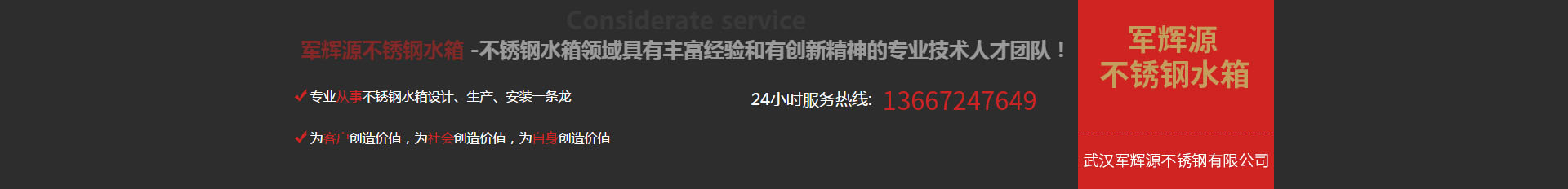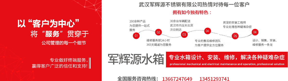 武漢軍輝源不銹鋼有限公司是華中地區(qū)專業(yè)生產不銹鋼水箱的環(huán)保企業(yè),公司集不銹鋼水箱開發(fā)設計、生產、銷售、維修、售后服務為一體。